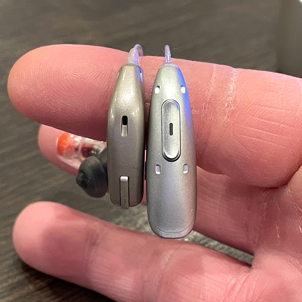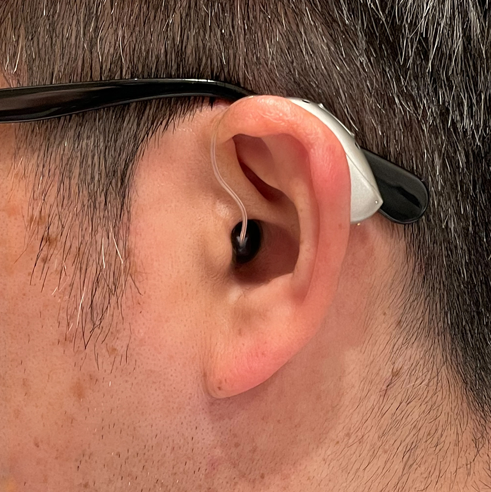Phonakインフィニオは90も70もAIチップを2つ搭載する都合上、かなり大きい。今回、私が長年愛用しているOticonオープンと比較することになるが、その大きさは明白である。長さは特段気にならないが、幅と厚みがかなり増す。私の耳輪からはひょっこりとはみ出してしまう。重さは装着してしまえば気になることはなかった。